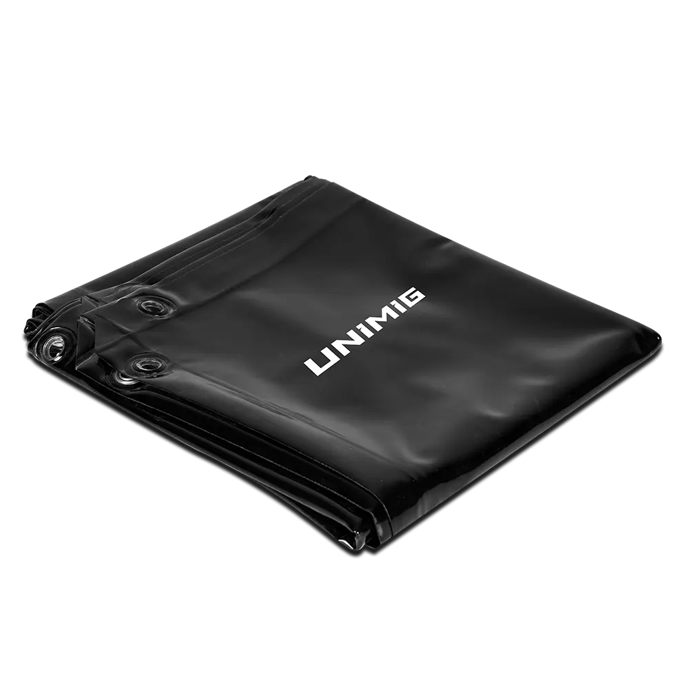 The UNIMIG Welding Curtain is used as a transparent screen to protect people from arc flash and dangerous ultraviolet rays.